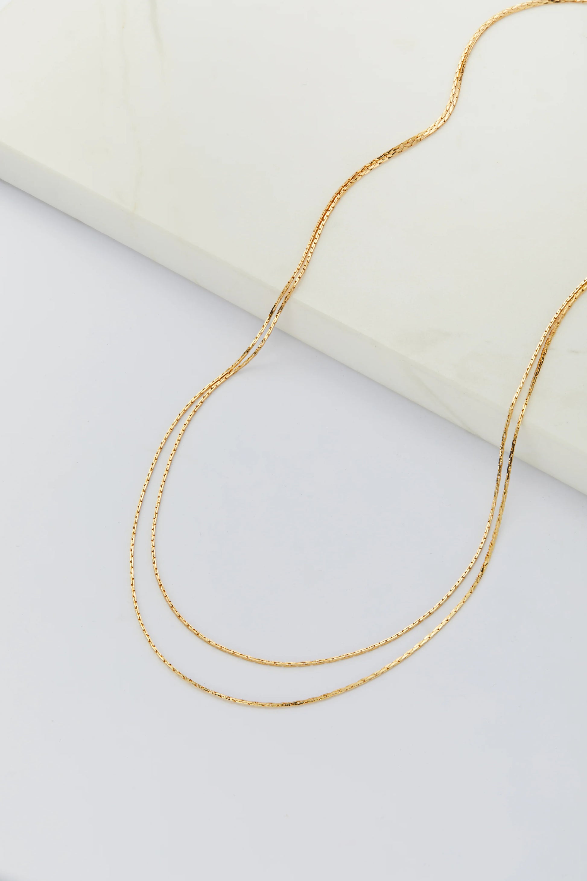 Elevate your style with the Paris Necklace, featuring a delicate two-layer fine chain design. This elegant necklace offers a subtle, layered look that adds depth and sophistication to any ensemble. Perfect for both everyday wear and special occasions. Pair with our Paris bracelet to complete the look. Made Nickel Free Hypoallergenic Stainless steel metal 18k Gold Plated Length: 43cm (L) + 5cm extender Waterproof / Ocean proof